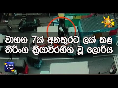 ගෑස් පහ හන්දියේදී බ්රෙක් නැති ලොරියට වාහන 7 ක් හැප්පුණ හැටි CCTV